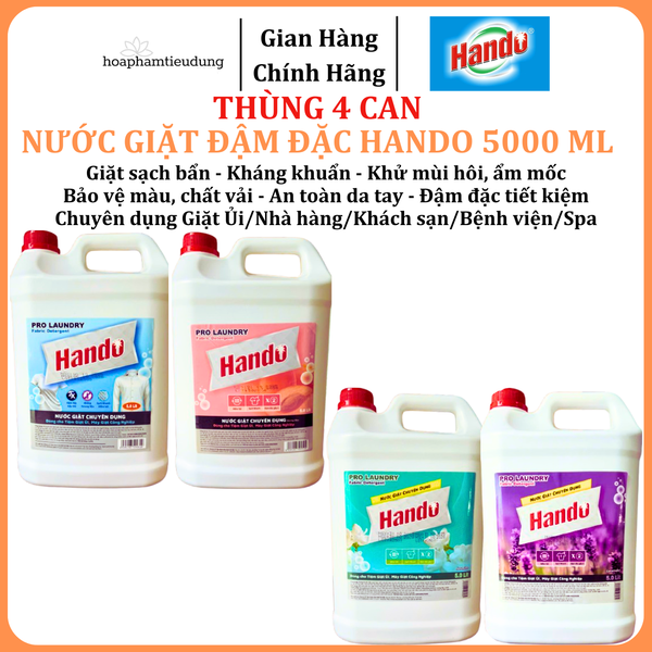 Nước giặt đậm đặc Hando 5L khử mùi ẩm mốc, chuyên dụng Giặt ủi, Quán ăn, Nhà hàng, Khách sạn, Cafe