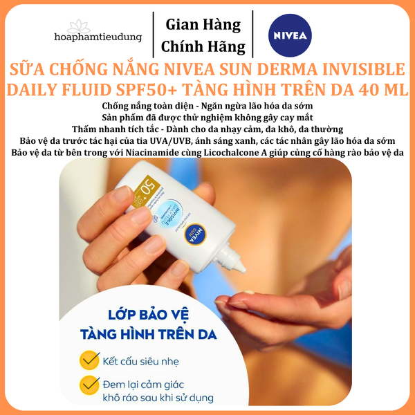 Sữa Chống Nắng NIVEA SUN Derma Invisible Daily Fluid SPF50+ Tàng Hình Trên Da 40 ml