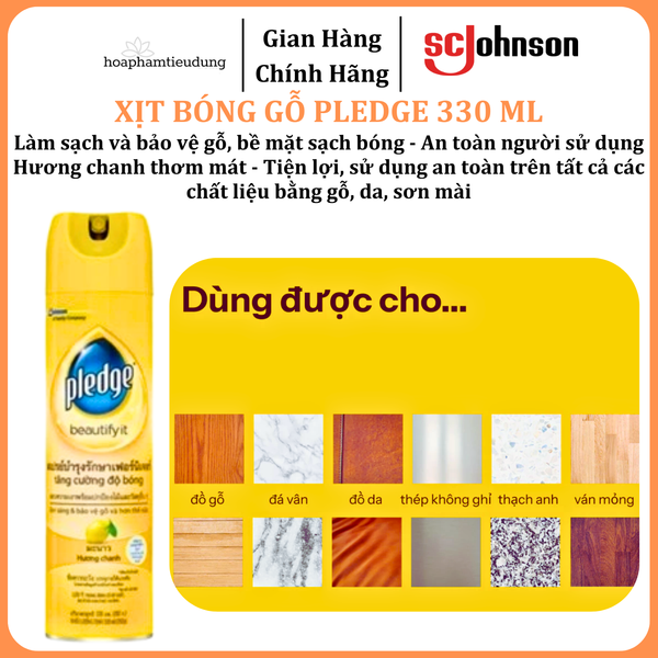 - Xịt Bóng Gỗ PLEDGE Hương Chanh Làm Sạch Và Bảo Vệ Bề Mặt 330 ml